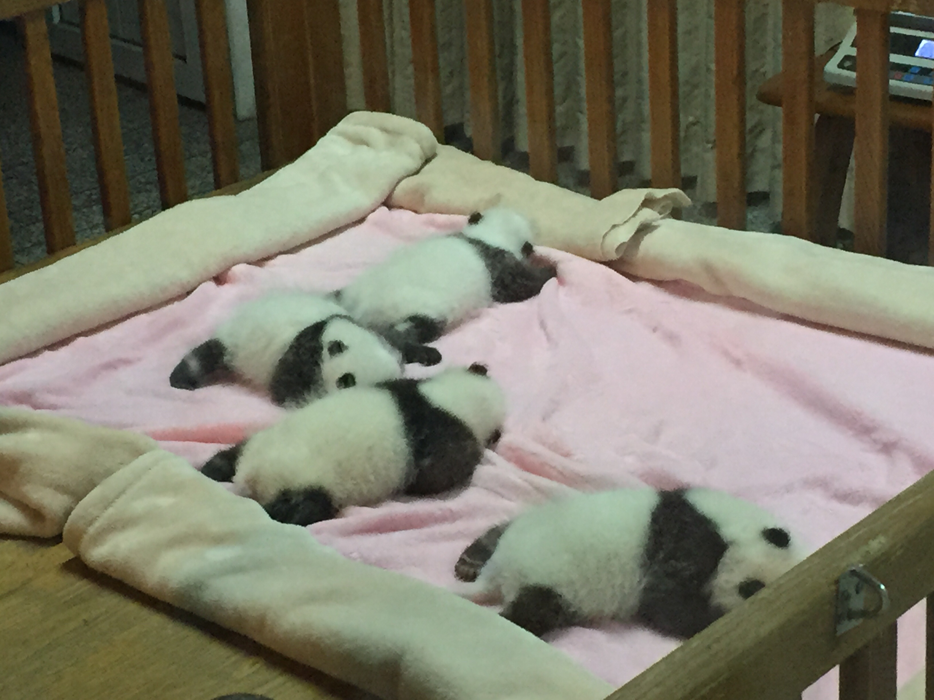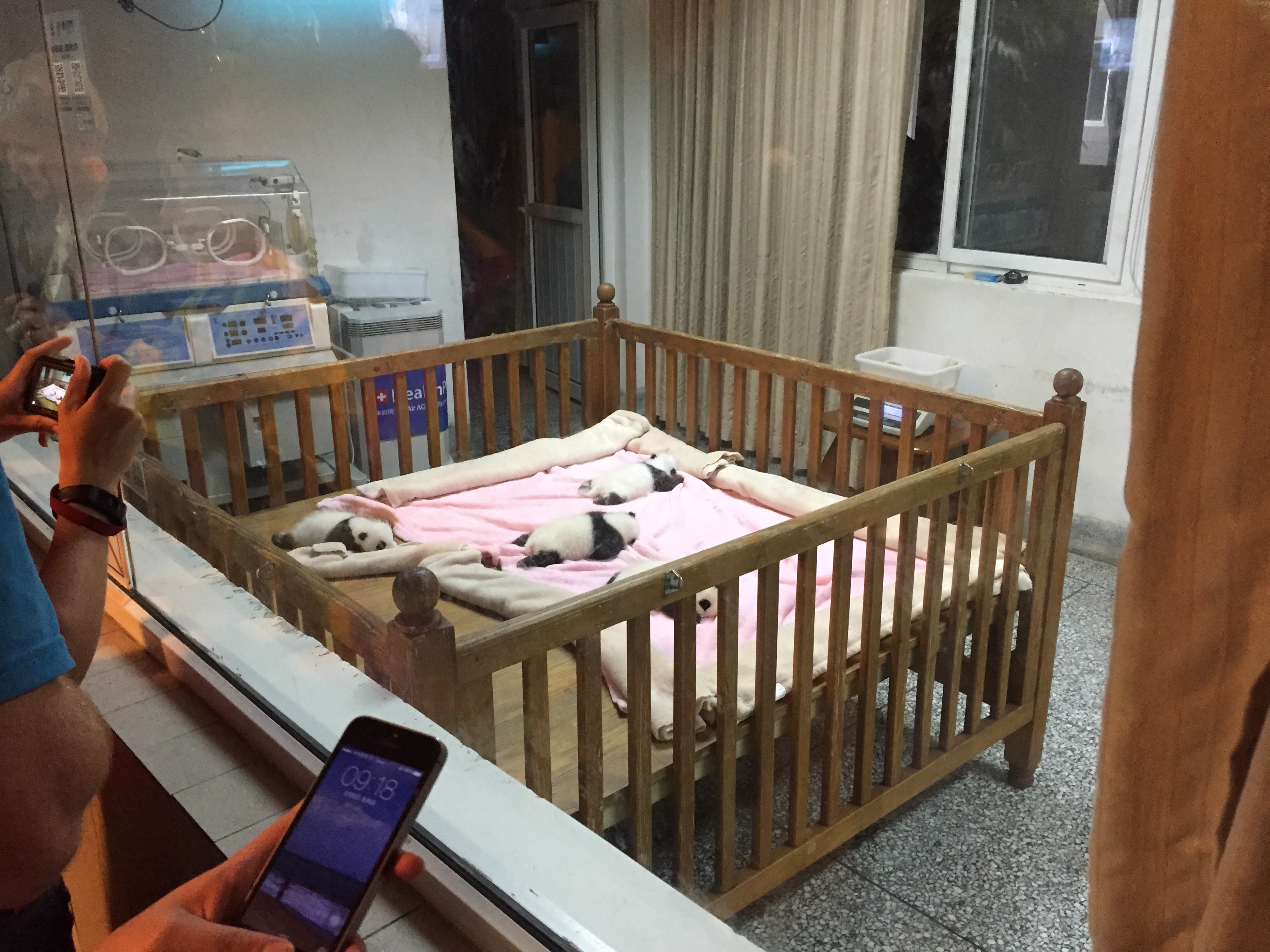 unit in a cot and they are viewed from the corridor through glass. We also saw other baby pandas further on in our walk through the base.