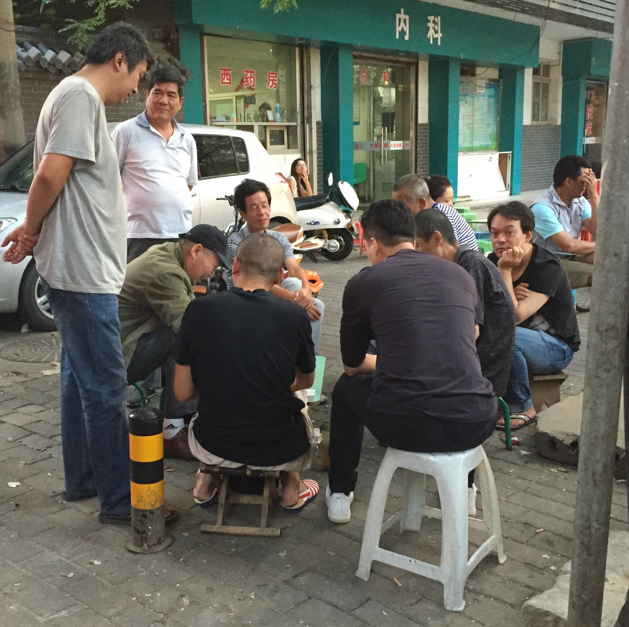 Musicians in park below Xian wallsLooking out from the parapet we could see groups of musicians playing Chinese music in the parks below us. The music reminded me somewhat of an Irish music seisiun. Some of these groups of musicians are very organised and have small amplifiers. Others just seem to assemble one by one and join in as they arrive. It was lovely to hear the music wafting up over the walls.